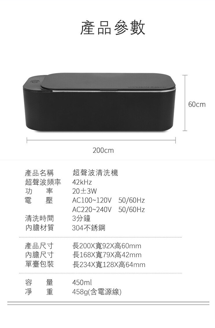 • 20W大功率清洗,達至最佳潔淨效果